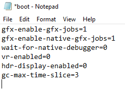 Step Five: Once you open boot.config with Notepad, you’ll see this screen: