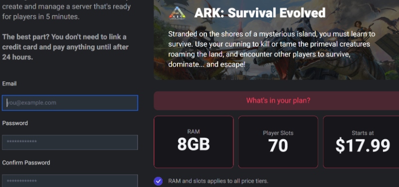 Start your 24-hour free trial today to host your hassle-free ARK lobby with Hostari.