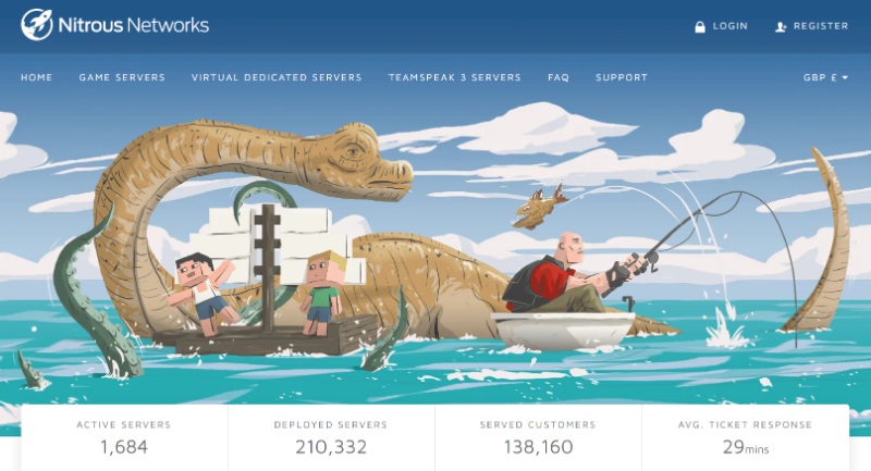 The starting price is £5.35 for 6 player slots (1-month plan). Every server comes with a minimum of 64 GB RAM, a 3.6 GHz Quad-core CPU, and multiple SSDs.
