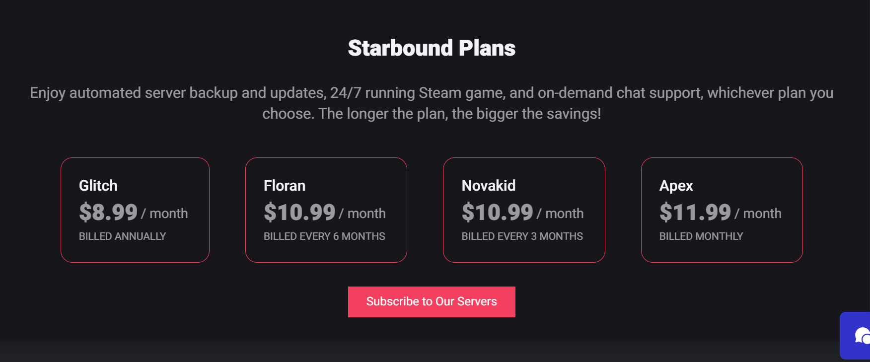 Starbound is a well-supported game that’s hosted on many platforms. Choosing which platform to rent from can be a difficult decision, and ultimately depends on your specific requirements, whether that’s pricing restrictions or ease of use