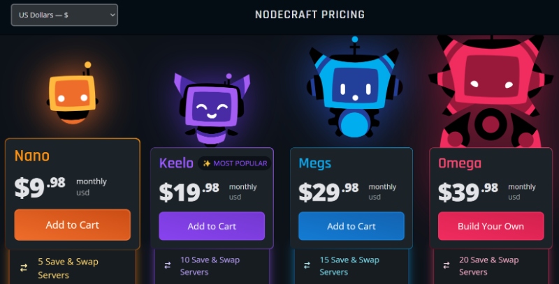 Nodecraft is a game server platform that initially only supported Minecraft, but now hosts servers for many other games as well. With Nodecraft, you can save game progress in the cloud and seamlessly switch between games at no extra cost. This means that, instead of custom prices for each game, they offer set pricing plans regardless of the game you choose.