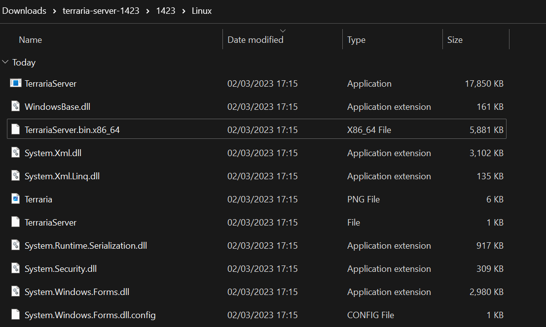 You can install the latest Terraria server file for free — just make sure it’s compatible with your version of the game. After downloading the file, unzip it and navigate to the Linux folder.