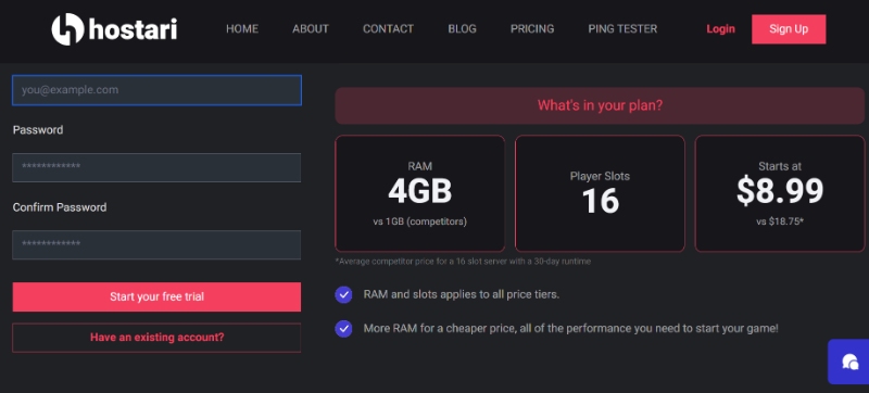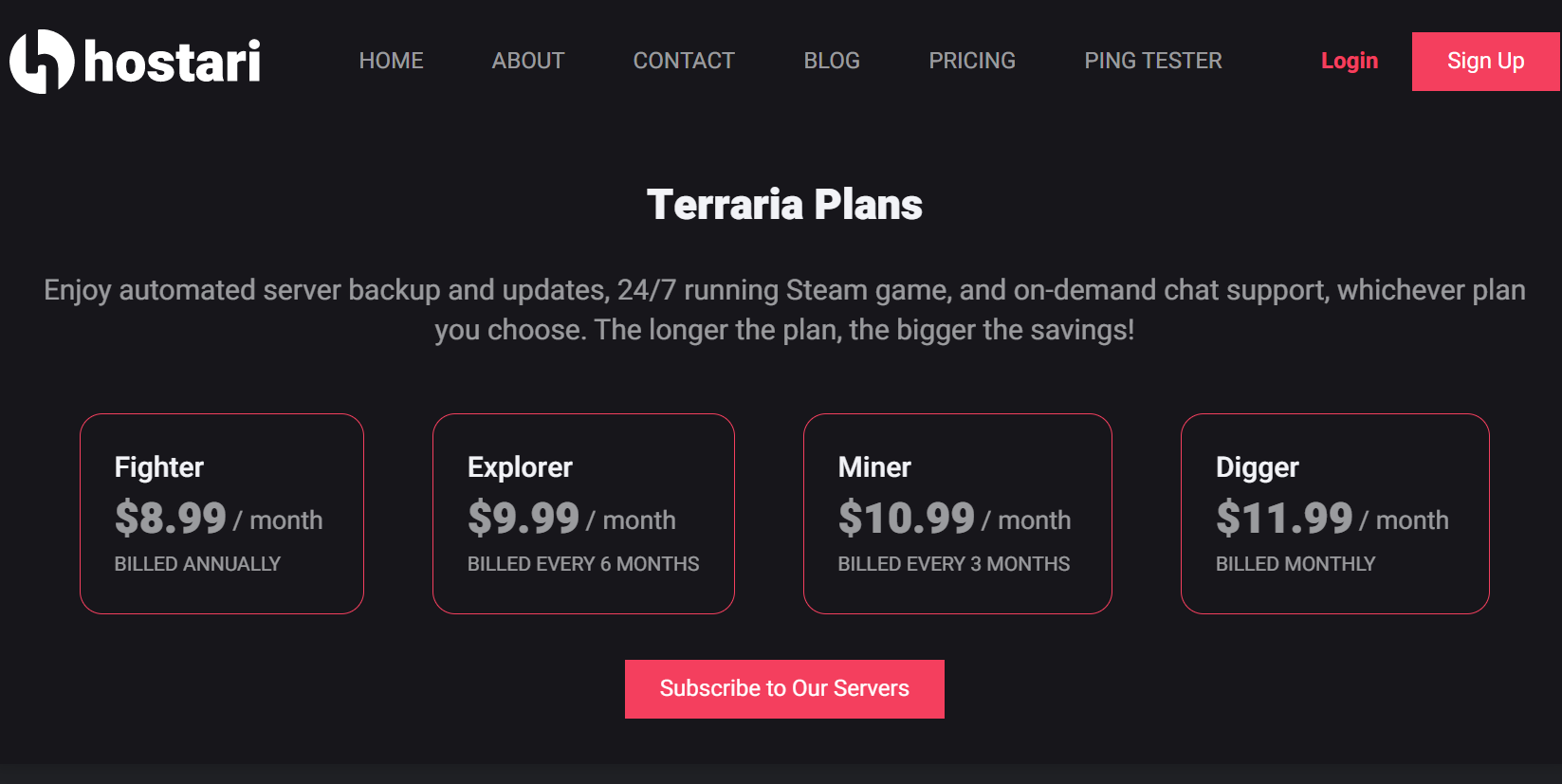 You can also go to Hostari’s homepage to view the different pricing plans for Terraria.