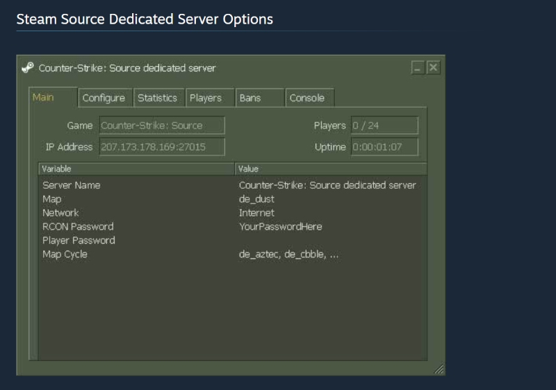 When running a dedicated Steam server, you will need to configure a few settings first: