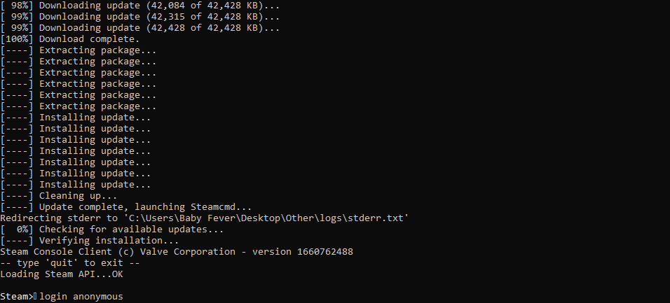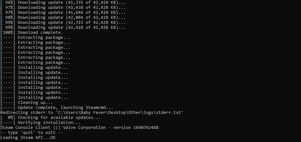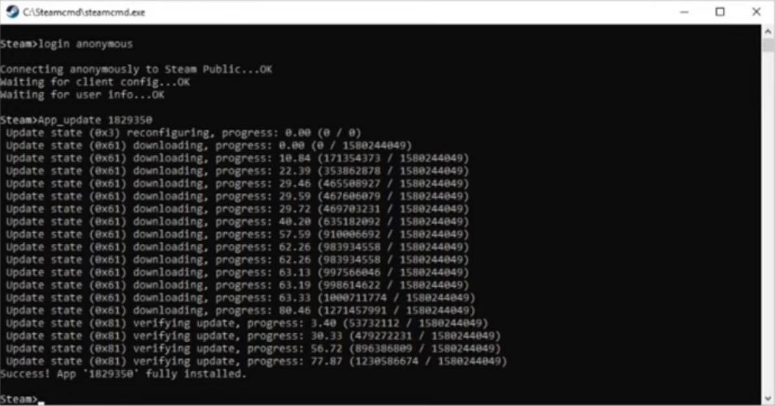 Once the download is complete, you will see the message: Success! App 1829350 fully installed.