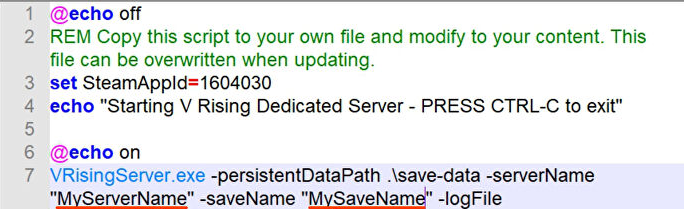 V Rising comes with an example file to start the server. You should use Notepad++ for this step.