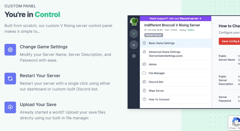 Easy Configuration: A custom-built control panel allows you to configure your server without dealing with server files.