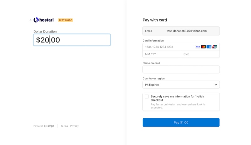4. On the Stripe checkout page, enter the amount you would like to donate (minimum $1.00).